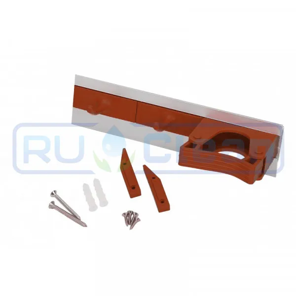 Настенное крепление (направляющая с крючками, резиновые зажимы и боковые заглушки) 2 крючка и 1 зажим. Крепление со сменными комплектующими, предназначено для настенного хранения инвентаря на пищевых предприятиях.
