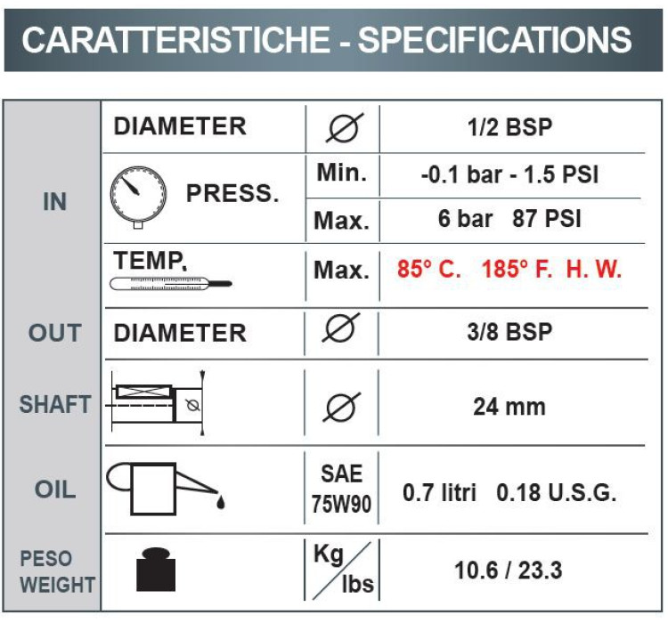 Плунжерный насос высокого давления с кривошипной передачей BertoliniTAM 1215 PRO. Номинальное давление 150 бар, расход воды 12,1 л/мин, частота вращения вала 1450 об/мин. Гладкий вал 24мм, шпонка.