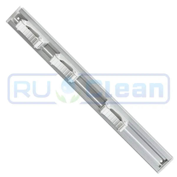 Универсальный настенный держатель для инвентаря в комплекте с тремя зажимами. Есть возможность установки дополнительных зажимов или крючков до пяти единиц.