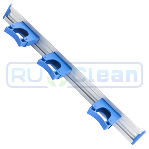 Универсальный настенный держатель для инвентаря в комплекте с тремя зажимами. Есть возможность установки дополнительных зажимов или крючков до пяти единиц.