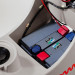 Машина управляется пешим оператором и не оснащена приводом движения. Движение осуществляется за счет усилия толкания, а также за счет вращения щетки. Усилие толкания на ровной горизонтальной поверхности не превышает 2-3 кг. Электропитание осуществляется от аккумуляторных батарей, установленных на борту моечного агрегата. Машина полностью автономна: во время работы оператору не нужно отвлекаться и регулярно поправлять сетевой кабель. Бортовая сеть 24 В. Машина комплектуется аккумуляторными батареями литиевого типа. Емкость батарей 72 Ач, время работы от одного заряда порядка 2.5 часов.