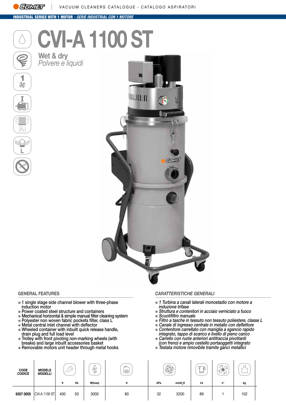 Пылеводосос Comet CVI-A 1100 ST - профессиональная модель для влажной и сухой уборки.