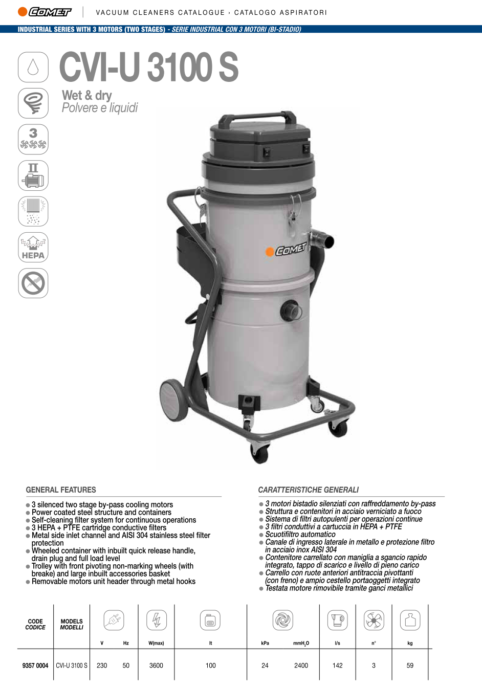 Пылеводосос Comet CVI-U 3100 S - профессиональная модель для влажной и сухой уборки.
