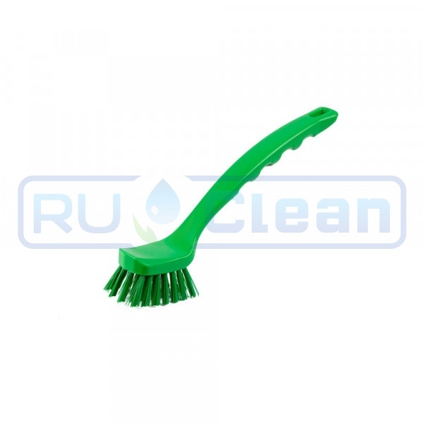 Подходит для чистки тарелок, кастрюль и сковородок, мелких деталей машин и оборудования для пищевой промышленности. Волокно из ПБТ, средней жесткости, для удобства пользования выпускается в 5 цветовых кодах в соответствии с правилами HACCP.